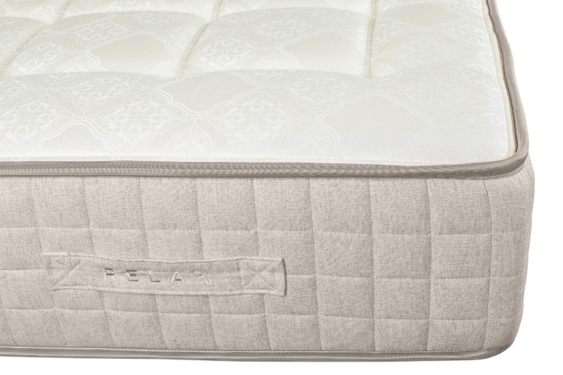 Colchón Relax Chester: firmeza alta, muelles ensacados con 7 zonas, materiales naturales y excelente transpirabilidad. Confort artesanal y durabilidad premium para un descanso estable.