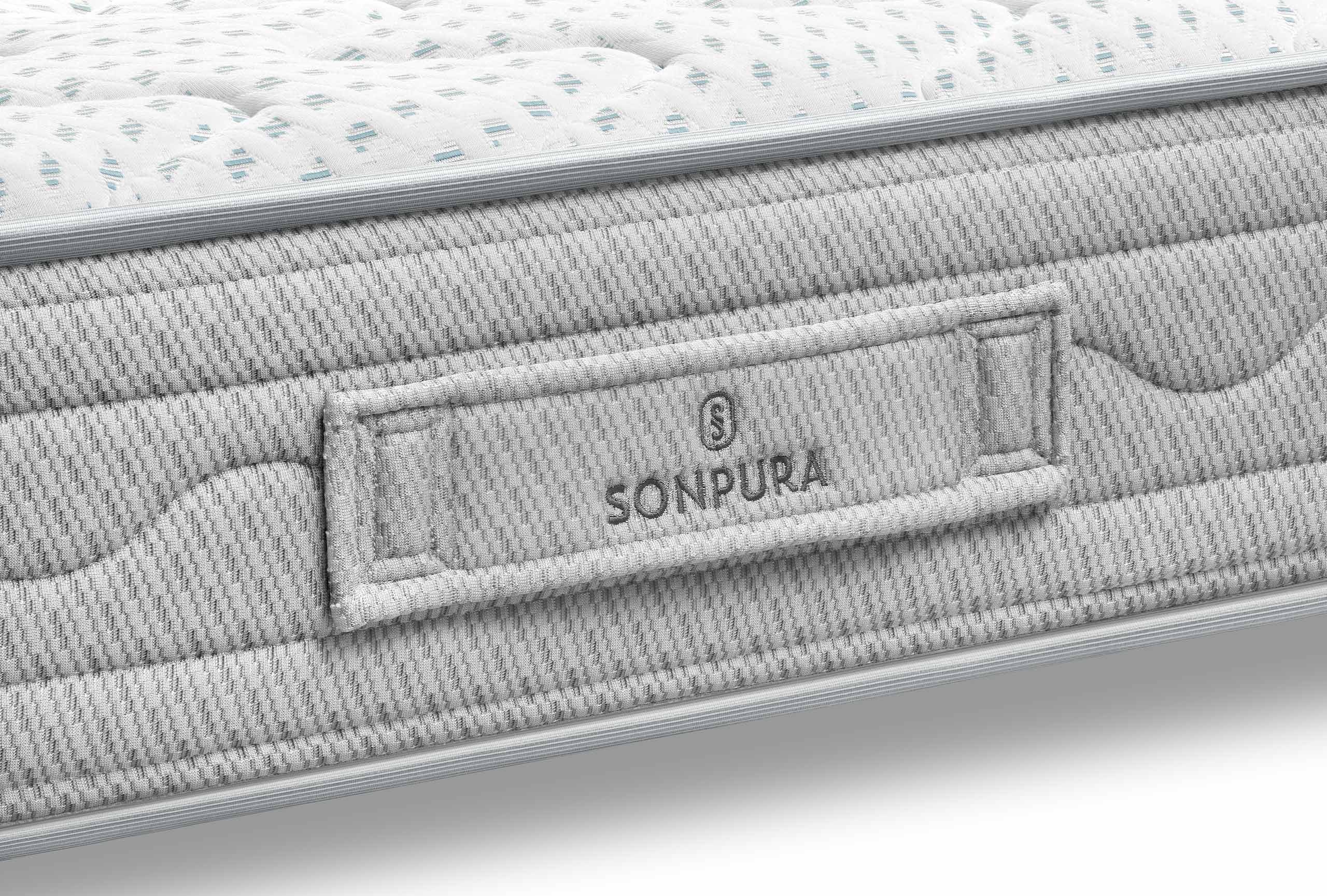 El colchón Play de Sonpura está diseñado con 300 muelles ensacados y materiales que mejoran el descanso, la adaptabilidad del cuerpo y su estabilidad y resistencia. Además cuenta en su núcleo con la tecnología avanzada del muelle ensacado Multisac, que favorece la transpiración e higiene, protegido con un perfil perimetral que compacta el bloque de muelles ensacados y no hunde los laterales al sentarnos sobre ellos. También está hecho con acolchados de Confortec, lo que aporta una sensación muy confortable, que recuerda a dormir sobre una espumación. Si compras colchón y base o canapé de Sonpura, cualquier combinación, de iguales medidas, tu garantía de 2 años se amplía a 5.
