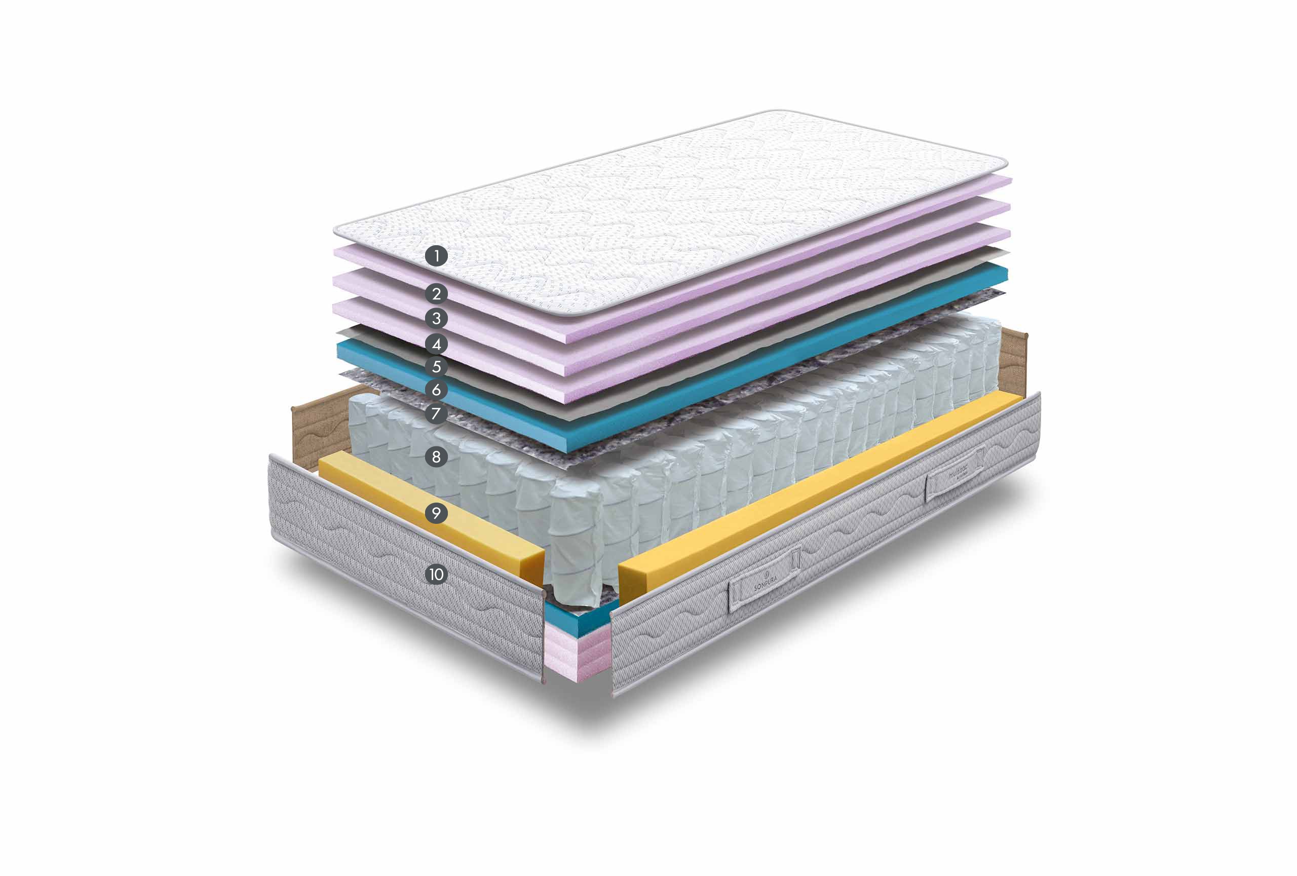 Estructura indeformable. Marco de alta densidad que recubre la carcasa de muelles ensacados. Su estructura alarga la vida del colchón y garantiza una mayor estabilidad, resistencia e indeformabilidad.